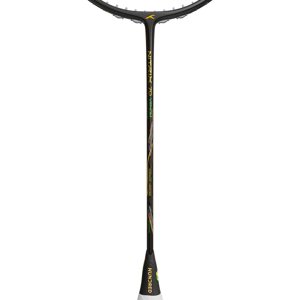 Nitrix 70 Venom is a racket created for heavy smashes and offensive play. The head-heavy balance loads up each swing with momentum, while its ultra-slim 6.1mm shaft creates a whip-like effect on contact. M46X carbon fiber ensures superior power transfer and responsiveness and CNTRL Foam lines the inner frame to absorb shock and keep each shot stable.